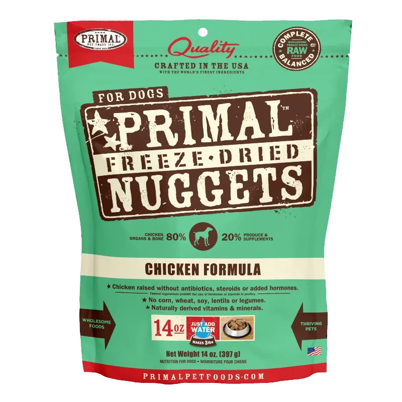 Feeding Primal Freeze-Dried Formula is easy.Simply serve as is,or rehydrate by adding water. To rehydrate, add 1 tablespoon of water for every nugget, or 1/4 cup of water for 4 nuggets. For best rehydrating results, break nugget into small pieces and mix thoroughly with water to force moisture into product.Please refer individual packaging for more details.