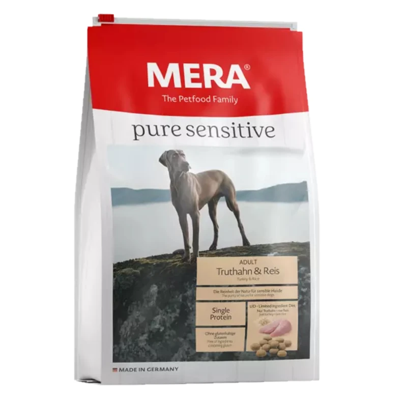 MERA pure sensitive with turkey and rice is a particularly tasty complete feed for sensitive dogs with special needs or dietary problems.