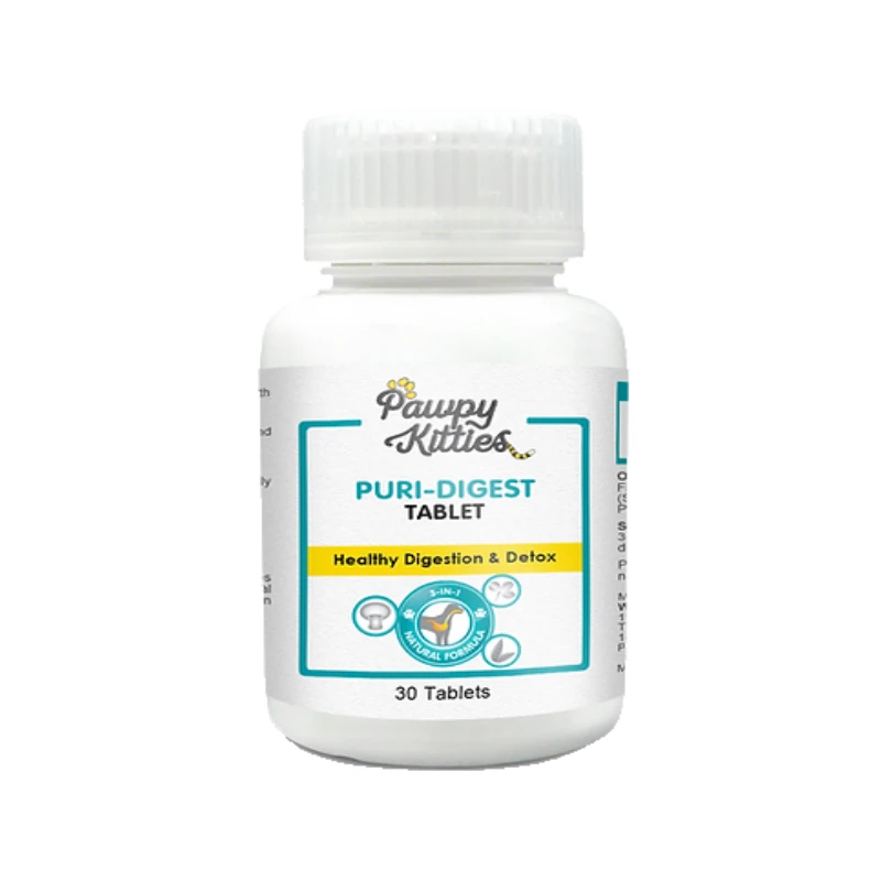 Pawpy Kitties Puri-Digest Tablet is used as a health supplement for animal only. This unique formula combines 3 natural ingredients – champignon mushroom extract, chlorophyll and green tea extract to promote healthy digestive system, improve bowel movement, cleanse the colon and detoxify the blood.