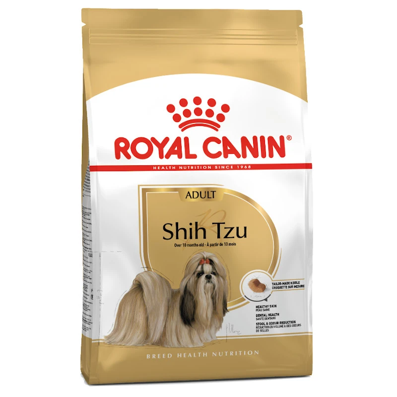 SHIH TZU ADULT helps support the skinās ābarrierā role (exclusive complex), maintain skin health (EPA & DHA, vitamin A) and nourish the coat. Enriched with borage oil. This formula helps reduce the risk of tartar formation thanks to calcium chelators. This formula also helps reduce faecal smell and volume. A kibble exclusively designed to make it easier for the Shih Tzu to pick up and to encourage him to chew.