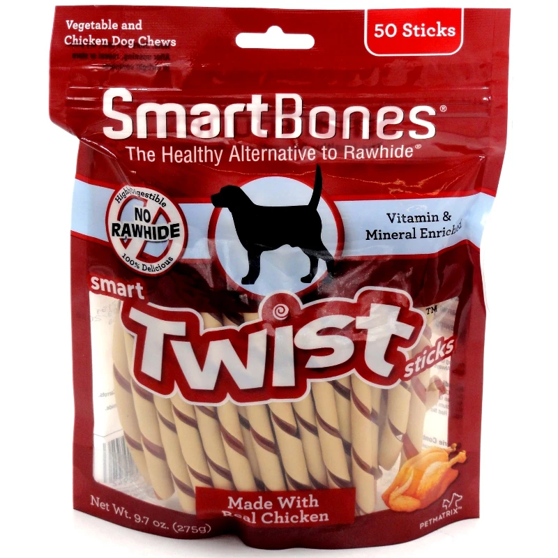 SmartBones Smart Twist Stick features real chicken and wholesome vegetables.